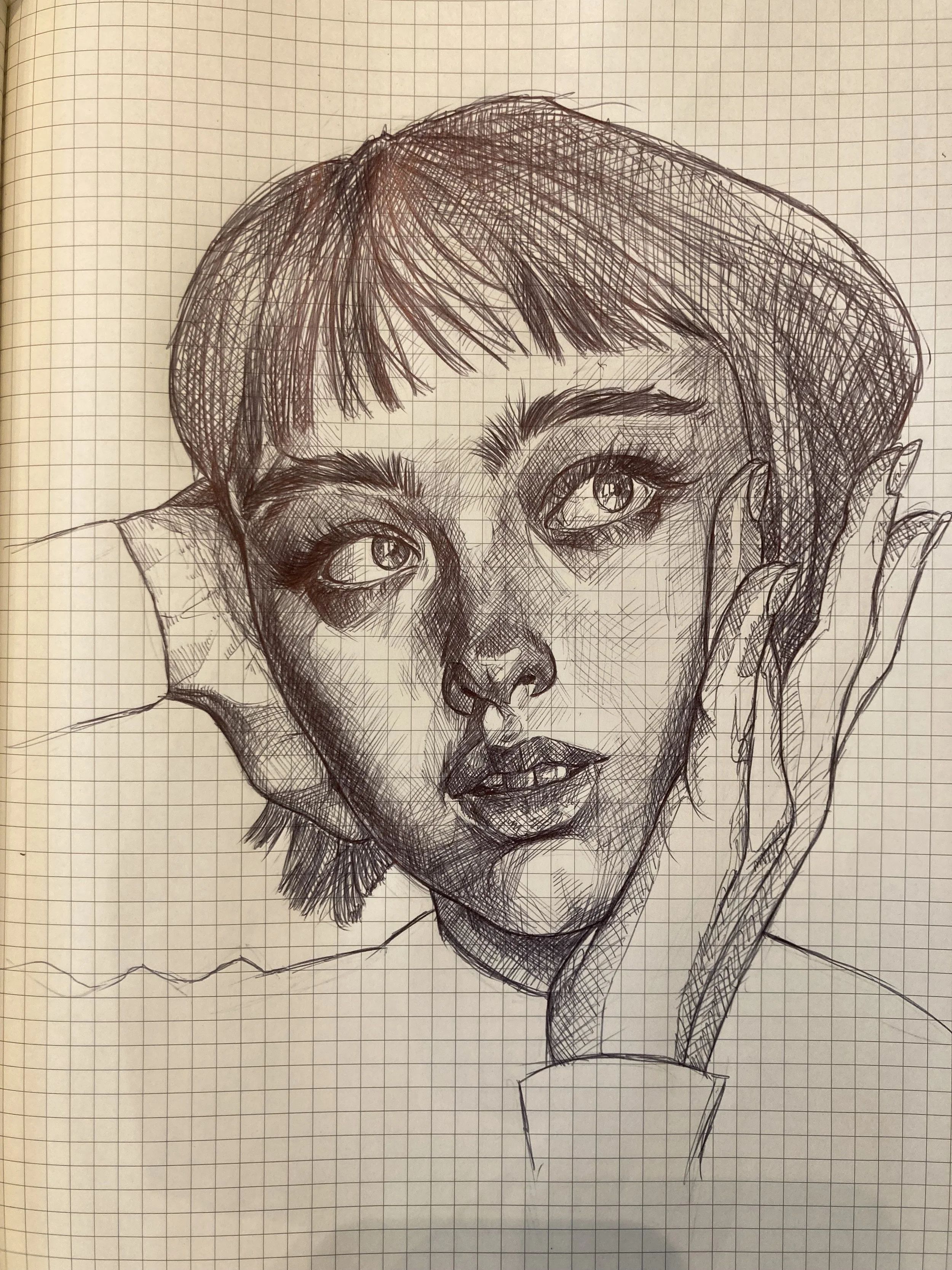 Curious girl - ballpoint pen